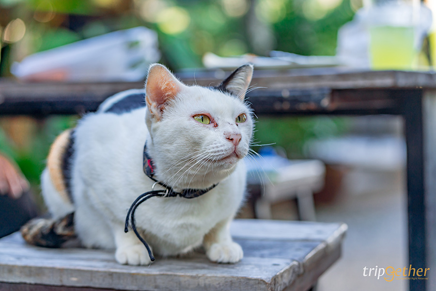 สำหรับใครที่เป็นทาสแมวก็อย่าลืมแวะไปทักทายสามสี แมวสุดอินดี้ของแคมป์หมาบ้าใจดี ที่จะคอยนั่งต้อนรับผู้เข้าพักทุกคนอยู่