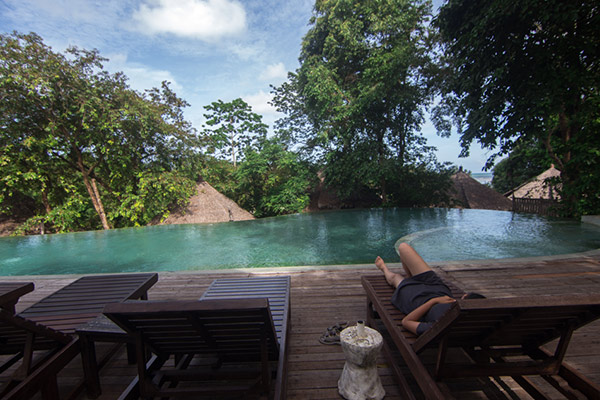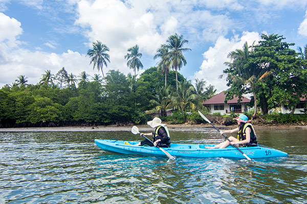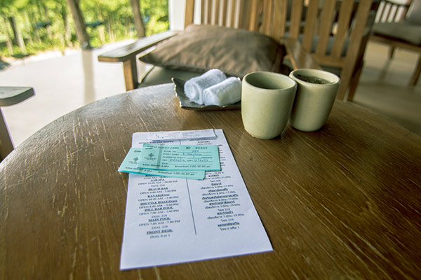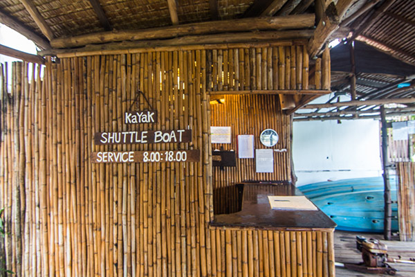 เช็คอิน มี welcome drink ให้เย็นชื่นใจ มีใบบอกรายละเอียดบริการของโรงแรม พายเรือหรือบริการเรือส่งหาดส่วนตัว ฟรี 8.00 – 18.00 มีรถสองแถวไปหาดทรายขาวฟรี 10.00 กับ 16.00 เรือพาชมหิ่งห้อยฟรี 19.00 – 20.00 อาหารเข้า 7.00-10.00