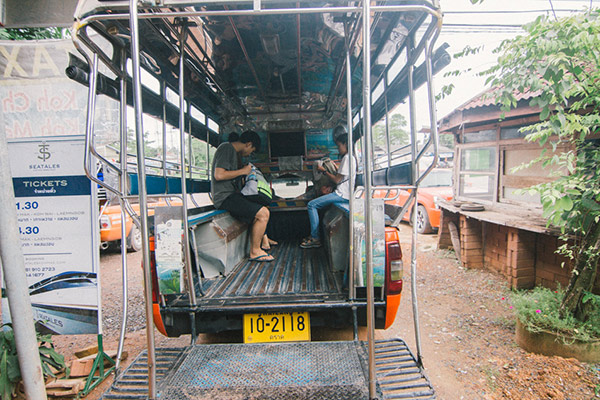 ขึ้นเกาะก็จะเจอรถสองแถวรอนักท่องเที่ยว สองแถวจะวิ่งจนถึงบางเบ้าเลยครับ ค่าโดยสารตามระยะทาง เกาะช้างไม่สามารถวิ่งรถได้รอบเกาะนะครับ