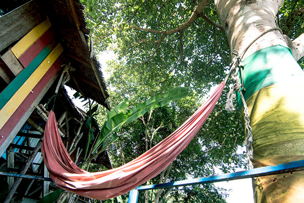 ร้านสไตล์เรกเก้ มีเปให้นอนด้วยอยู่ใต้ต้นไม้ใหญ่เย็นสบาย