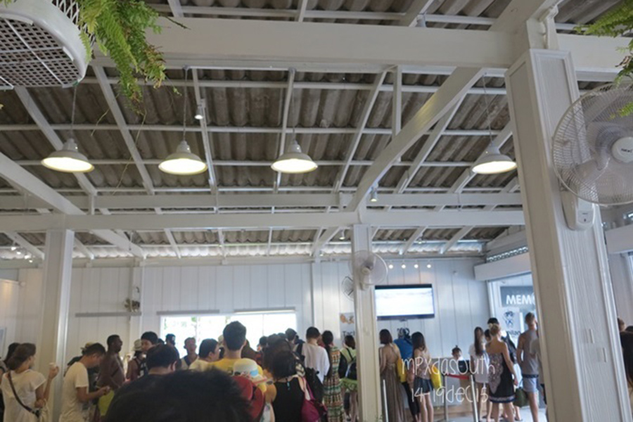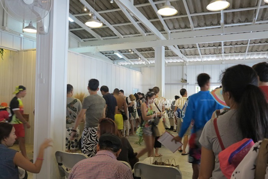 ระหว่ารอเรียกขึ้นเรือก็ไปต่อแถวทานอาหารเช้าซึ่งแถวนั้นยาวมาก