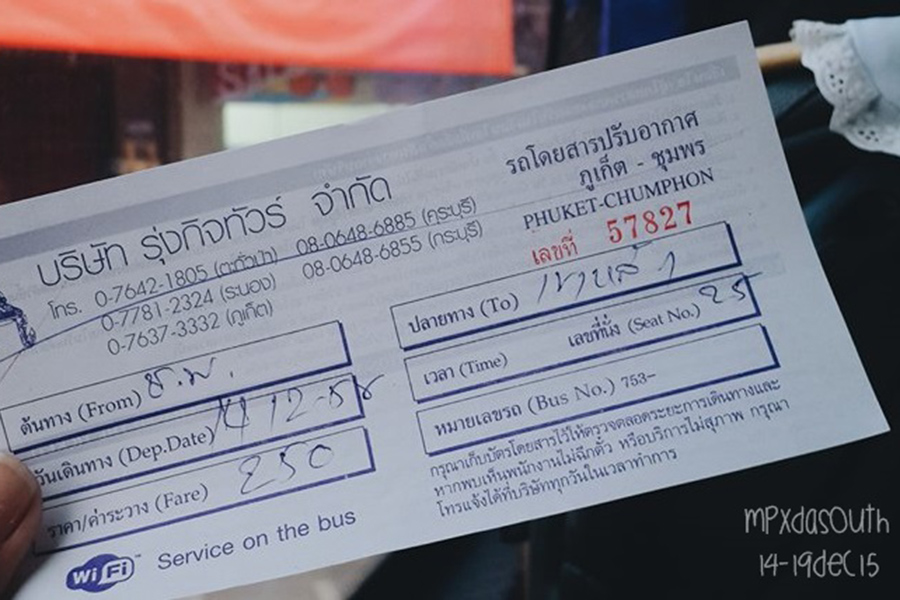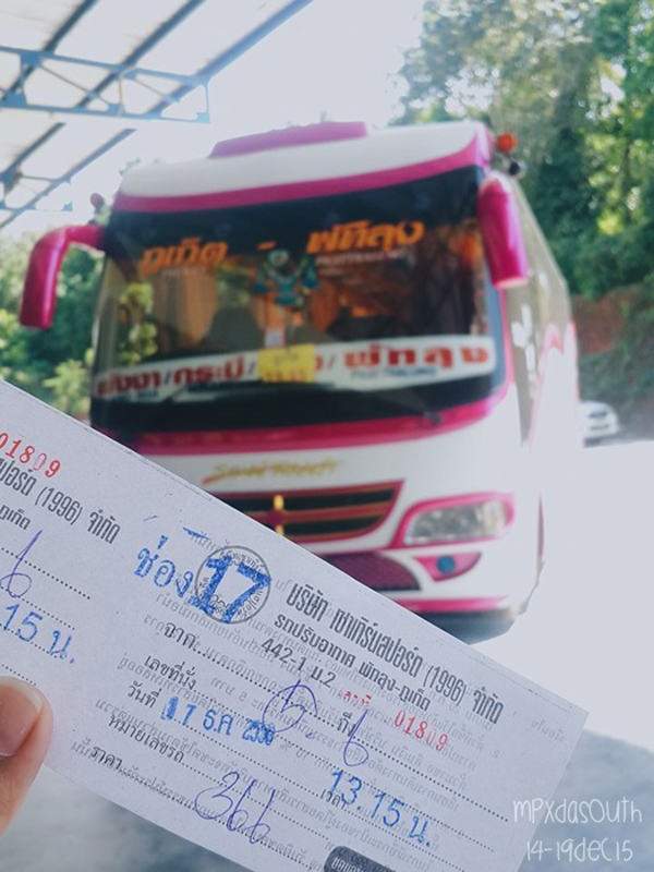 วันนี้เราจะออกเดินทางต่อไปยังจังหวัดภูเก็ต ด้วยการโบกรถทัวร์ริมถนนที่เขาหลัก ค่าโดยสารประมาณ 100 บาท ใช้เวลาเดินทางประมาณ 1 – 2 ชั่วโมง