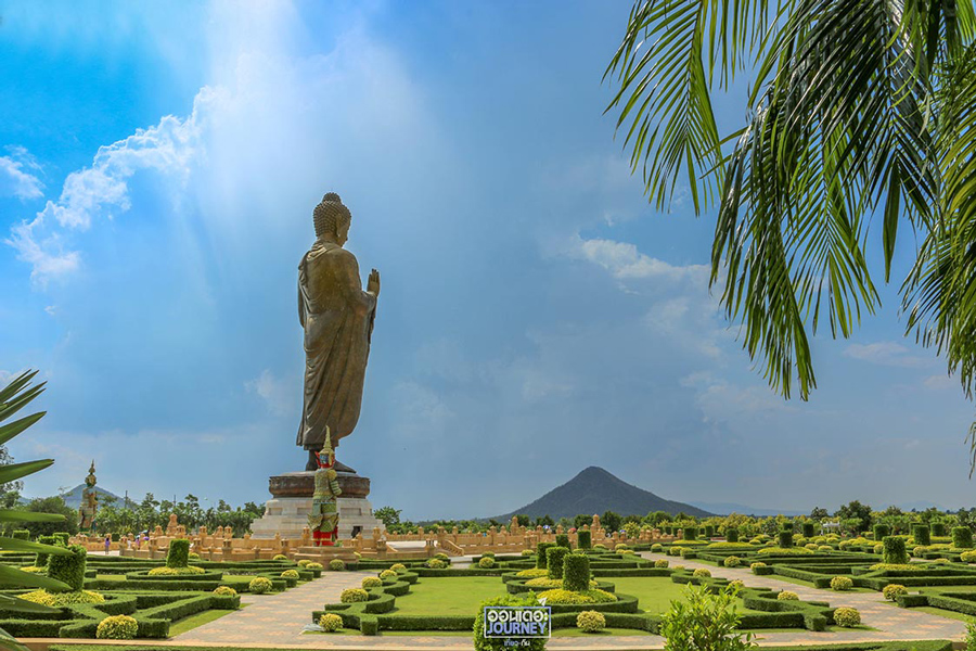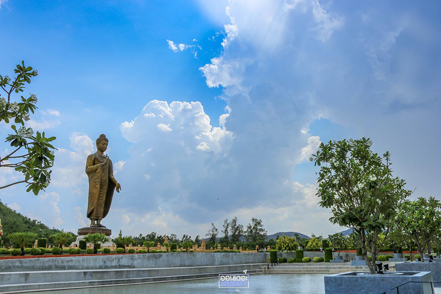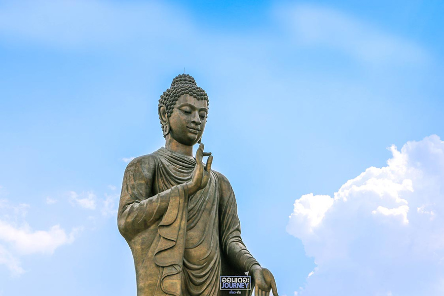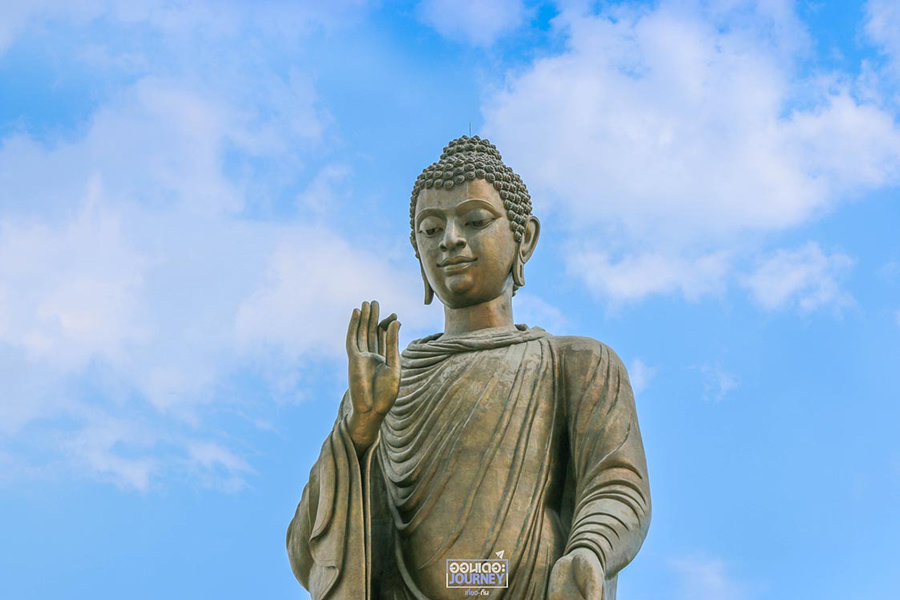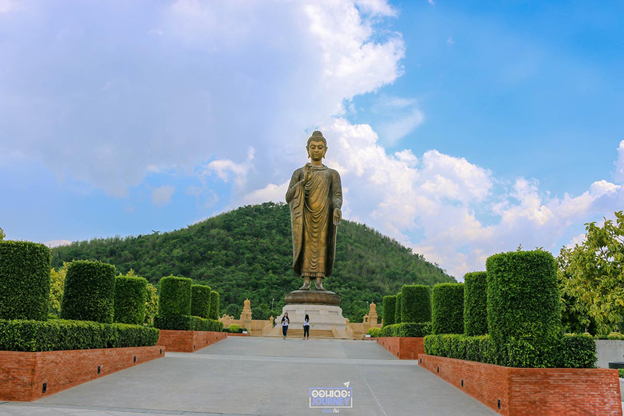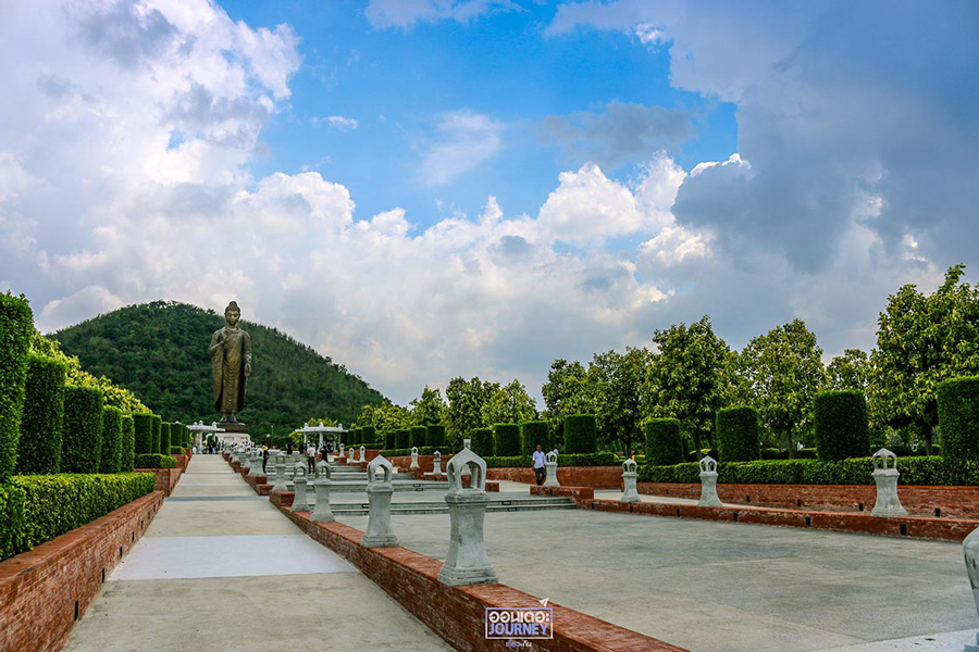 พระพุทธรูปตั้งอยู่ด้านหน้าของเนินเขาส่งเสริมให้องค์พระเด่นสง่าเลยทีเดียว
