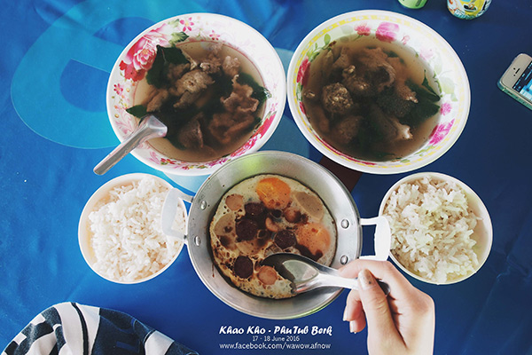 หลังจากจัดการตัวเองเสร็จ เกิดอาการหิวโซ เริ่มหาข้าวกินก่อนออกเดินทาง ก็เลยแวะไปกินร้านนึง มีเมนูหลากหลายมาก ข้าวแกง ข้าวมันไก่ ต้มเลือดหมู เราเลยตกลงกันกินร้านนี้สะเลย