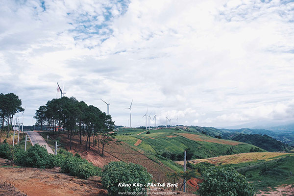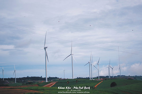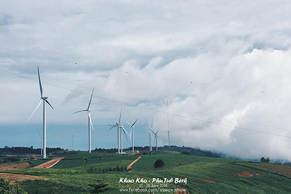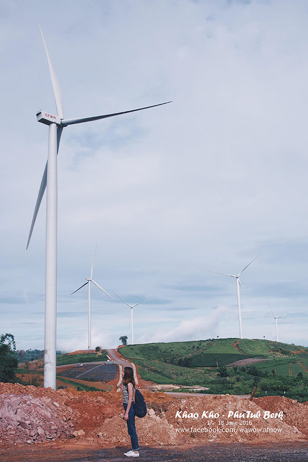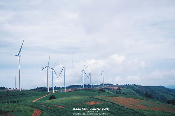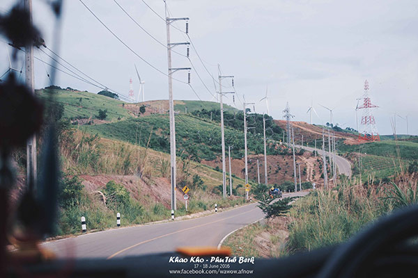 คนที่รับเราขึ้นรถคือ “พี่พง” ค่ะ พี่เค้าเกิดเชียงใหม่ โตกรุงเทพฯ และตอนนี้พี่เขาก็มาอยู่เขาค้อ กำลังเริ่มทำรีสอร์ท พี่พงแกเหมือนเขาเป็นคนชนเผาเล็กน้อยค่ะ เค้าจะพูดภาษาท้องถิ่น ที่เราฟังไม่ออกด้วย แต่พี่เขาพูดไทยได้พอประมาณนึง พี่เค้าก็ถามพวกเราว่าจะไปไหนกัน มีแพลนเที่ยวไหนไม่รอช้าจ้า เปิดรูปพร้อมแพลนให้เขาดูเลย และถามว่า อันนี้ที่เป็นกังหันลมอยู่ไหนหรอค่ะ ??? พี่เค้า อ่อออออ เนี่ยเดี๋ยวเราต้องผ่านก่อนไปทุ่งสมอ ไปไหมละเดียวพี่พาไป วี๊ดๆ กรี๊สๆๆๆๆๆ ดิ้นแรง ในใจอยากไปจะขาด แต่ก็บอกพี่เค้าว่า “พี่ค่ะ ถ้าพี่มีธุระก็ไม่เป็นไรนะค่ะ ไปทุ่งสมอก่อนก็ได้ค่ะ เดี๋ยวพวกหนูลองหาวิธีไปเองอีกทีนึง” พี่พงใจดีมาก แกบอกว่า โอ๊ยไม่เป็นไรหรอก พี่จะไปรับเพื่อนที่เป็นคนเวียดนามตั้งตอนเที่ยงแหนะเดี๋ยวพาพวกเราไปเที่ยวกันก่อน เรานี่ยืดอกพร้อมพูดกะเพื่อนว่า ต้องขอบคุณกรุนะค่า ที่กรุลืมที่ชาตแบต เพื่อนๆเราก็ จ้า มุงมาน ตัวนำโชค ตัวเงิน ตัวทอง เอ๊ะ!!! มุงต้องขอบคุณกรุสิ ไม่ใช่ด่ากรุแบบนี้ ไอ้พวกเพื่อน #$#%$^#%$ ใช้เวลาไม่นาน เราก็เริ่มเห็นกังหันลมเขาค้อไกลไกลโพ้น