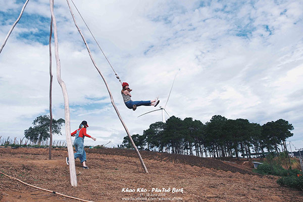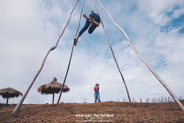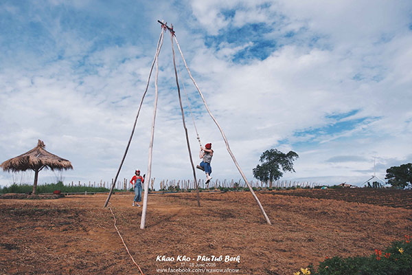 หลังจากเพลิดเพลินถ่ายรูปเล่นแถวกังหันไม่นาน พวกเรามองไปทางขวามือก็เห็นอะไรขาวๆๆ เหมือนเป็นชิงช้า พวกเราดูตื่นเต้น จนพี่พงบอกขึ้นไปไหม ฮ่า และเราก็ได้พบกับบบของเล่นใหม่ อารมณ์บับเหมือนได้กลับอยู่ อนุบาล 3/3 อีกครั้ง นั้นก็คือ โล้ชิงช้า นั้นเอง