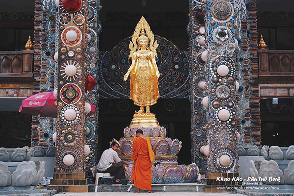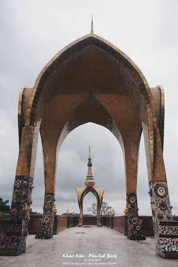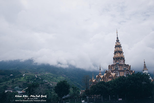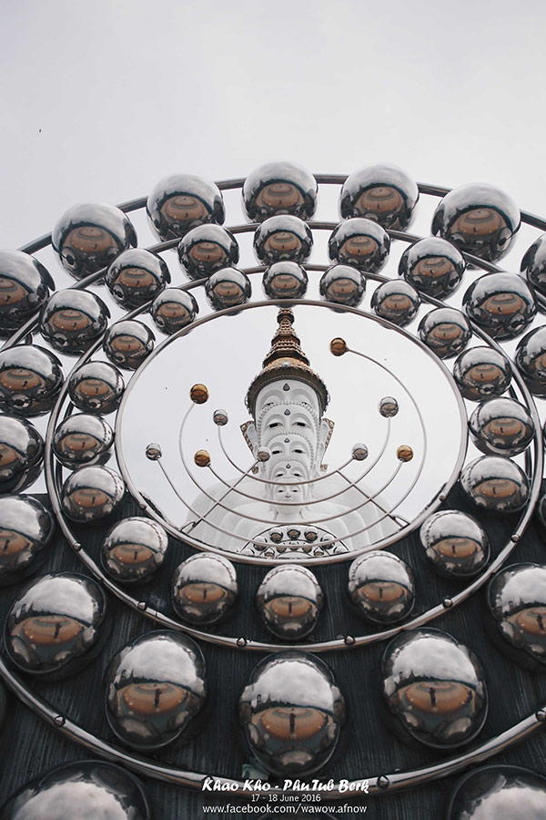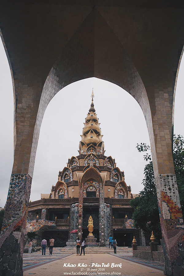 แต่เพื่อนสาวเวียดนามสองคนเค้าต้องไปโอนตังที่ธนาคาร พี่พงเลยบอกถ้าถ่ายรูป เที่ยวเสร็จแล้วให้โทรหาพี่เค้า เพราะพีเค้าไปทำธุระก่อน และเดี๋ยวจะขึ้นมาเที่ยวบนนี้ที่หลัง พวกเรากับพี่เขาก็แลกเบอร์กันไป และมาสงบจิตสงบใจกันที่วัดต่อ ครั้งนี้เป็นครั้งที่สอง ที่เราได้มาวัดพระธาตุซ่อนแก้ว แต่เพื่อนของเราพึ่งมากันครั้งแรก แต่ครั้งแรกที่เรามา ยังสร้างไม่เสร็จ แต่พอสร้างเสร็จแล้ว มาเห็นคนของจริงนี่ก็แอบทึ่งนะ คือสวยมากจริงๆ พวกเราเริ่มกันที่ เจดีย์พระธาตุผาแก้ว ก่อนเลย