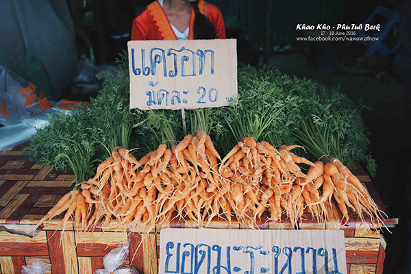 นอกจากนั้น ตรงนี้มีชาวบ้านมาขายของด้วยค่ะ ของฝากเอ่ย ของที่ระลึกเอ่ย รวมไปถึงบรรดาผักสุดชิค ที่มีความเป็นทับเบิกสูง แครรอท ป้าคนขายบอกกินได้ยันใบเลยนะ
