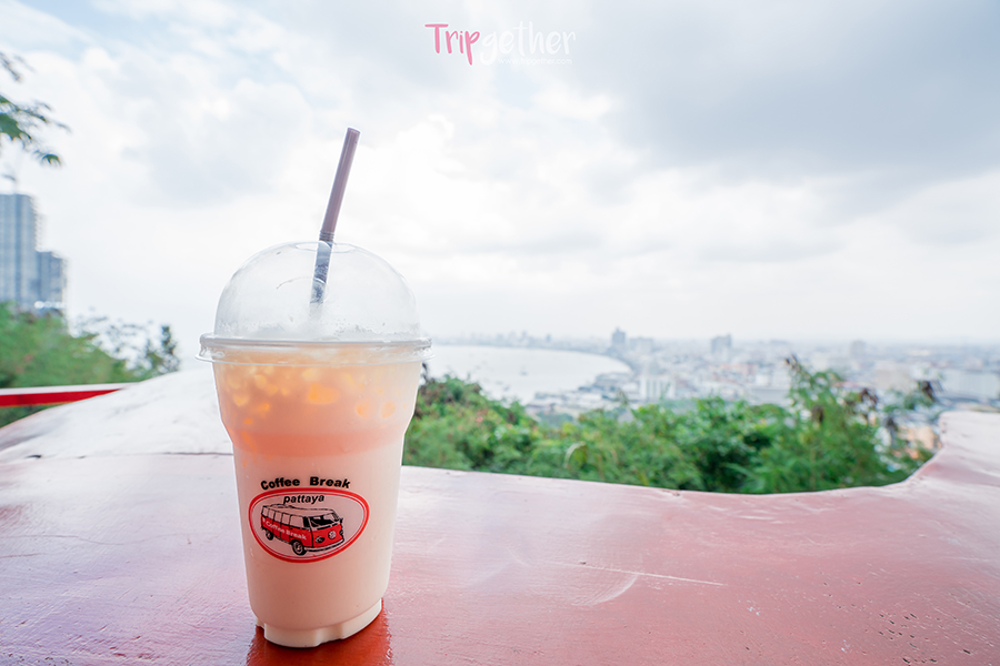 ขับรถเลียบชายหาดมาได้สักพัก ก็ขึ้นมาที่อนุสาวรีย์กรมหลวงชุมพร เขตอุดมศักดิ์ ในใจกะว่ามาดูวิวทะเลแถวอ่าวพัทยาแบบสวยๆ ปรากฎว่าเมฆฝนไล่มาติดๆเลยจ้า แพลนถ่ายรูปตรงนั้นเลยต้องพับเก็บไป แต่ยังดีที่มาเจอร้านกาแฟ Coffee Break บริเวณใกล้ๆ กับถนนขึ้น-ลง อนุสาวรีย์กรมหลวงชุมพรฯ เลยแวะมาเติมความสดชื่นกันสักหน่อย