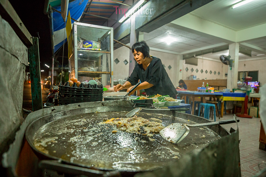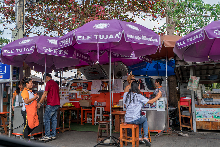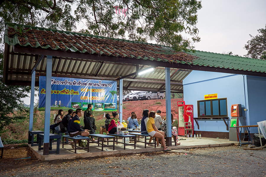 รับบัตรคิวเสร็จไม่รู้จะไปไหนดี พระอาทิตย์ก็ยังไม่ขึ้นให้ถ่ายรูป แถมเมฆก็ยังเยอะอยู่(หวังว่าพอพระอาทิตย์ขึ้นจะบางตาลง) ร้านข้าวในบริเวณนั้นก็เปิดตอน 06:00 น. ไปสอบถามพี่ทหาร เขาเลยบอกให้ไปที่จุดจำหน่ายตั๋วไปเกาะขามสิ จรงนั้นของกินมาขายแล้วนะ ไอ้เราไม่รอช้า เดินย้อนกลับไปทันทีด้วยความหิว