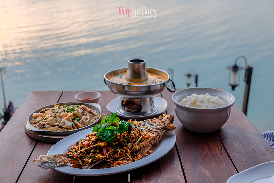ขับรถออกจากที่พักมาได้สักพัก ปฏิบัติการตามหาร้านอาหารก็เริ่มขึ้น เลือกกันอยู่สักพักจนมาจบที่ร้าน ริมผา ลาภิน ร้านอาหารเรือนไม้ริมหน้าผาที่มองออกไปเห็นวิวทะเลใกล้กับหาดบ้านอำเภอ ที่นี่มีอาหารไทย ฝรั่ง และซีฟู้ด ที่รับประกันความสดใหม่ให้ได้ลิ้มลองกัน วิวสวยๆ อาหารอร่อยๆ คือกำไรของชีวิตคนชอบเที่ยวแบบผมเลยครับ ฮ่าฮ่า