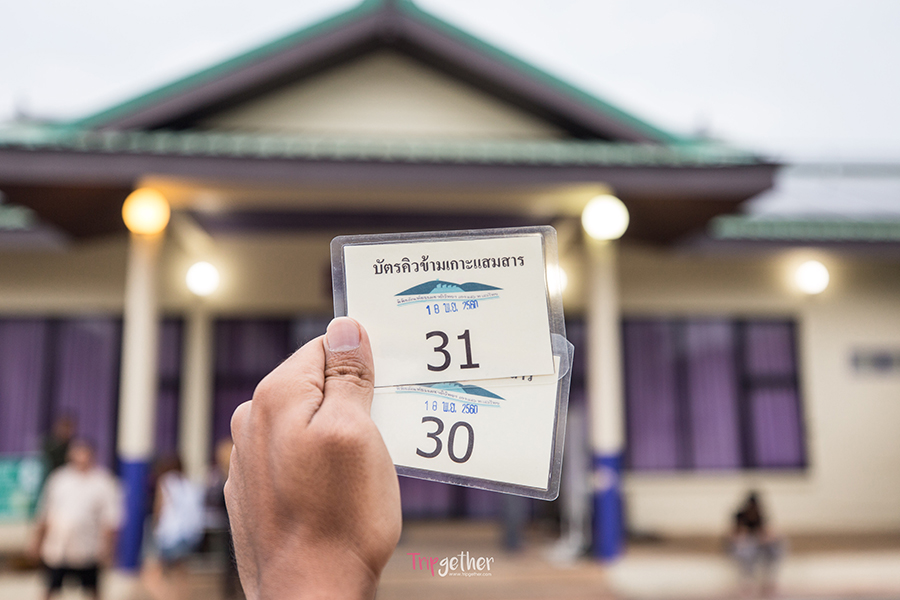 มาถึงจุดต่อคิว เราได้คิวซื้อตั๋วลำดับที่ 30,31 ขนาดเราคิดว่าเรามาเช้าแล้วนะ ยังมีคนมาเช้ากว่าเราอีก แต่ก็พอเข้าใจว่า ด้วยความที่วันหนึ่งๆ ทางเกาะรับนักท่องเที่ยวแค่ 300 คน จึงไม่น่าแปลกใจถ้าจะมีคนรีบมารักษาสิทธิ์การเที่ยวของตัวเองแต่เช้าขนาดนี้