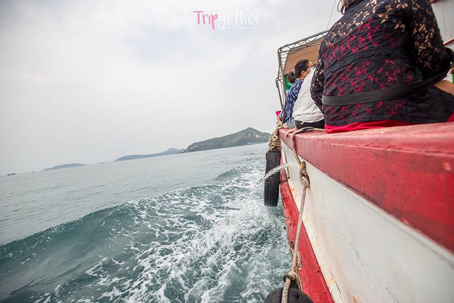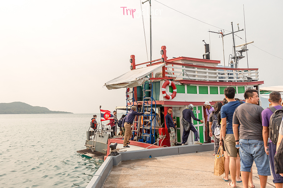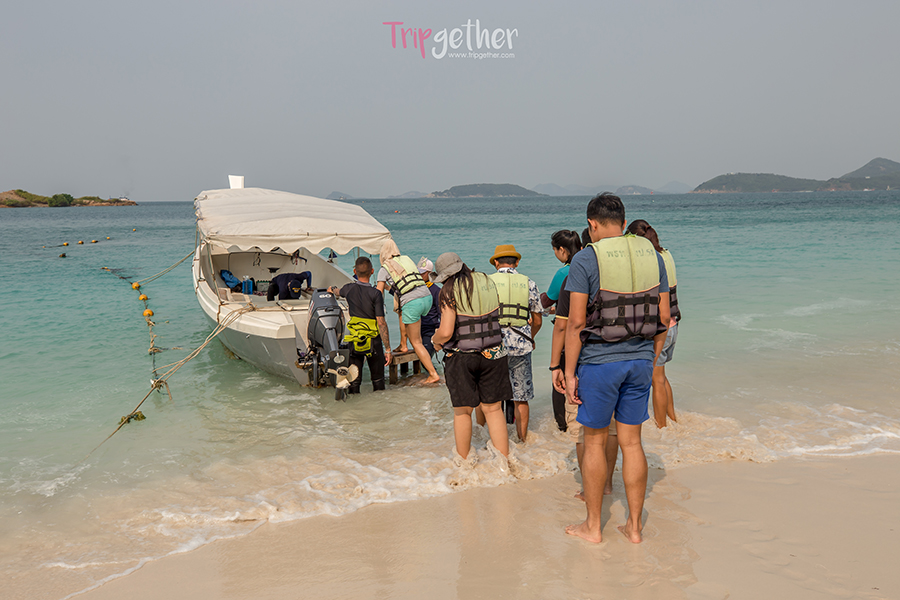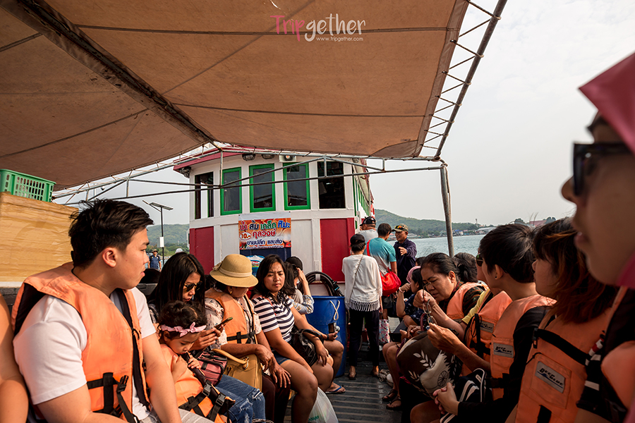 เรือที่จะพานักท่องเที่ยวไปเกาะแสมสารมีด้วยกันสองรอบ คือ รอบ 09:00 น. กับ 10:00 น. โดยรอบหนึ่งจะมีเรือสองลำคอยรับ-ส่งนักท่องเที่ยว ใช้เวลาเดินทางไม่ถึง 10 นาทีก็ถึงท่าเทียบเรือของเกาะ ขึ้นไปอย่าลืมใส่เสื้อชูชีพด้วยนะ
