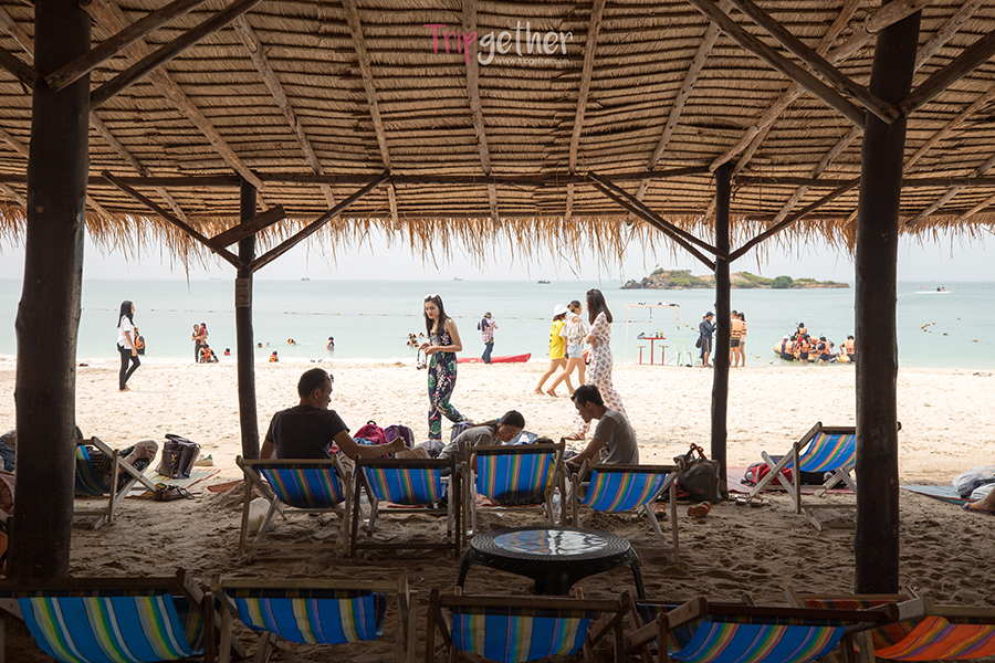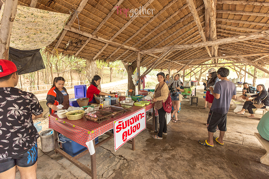 หลังกลับจากทริปดำน้ำ นาฬิกาก็บอกเวลาเกือบเที่ยงแล้ว ช่วงที่กำลังเดินเล่นริมหาดกันอยู่นั้น สายตาก็พาไปเจอกับซุ้มอาหารใกล้กับที่แขวนเสื้อชูชีพพอดิบพอดี ไม่รอช้าครับ เรารีบเข้าไปจับจองที่นั่งพักเหนื่อยกันอย่างรวดเร็วประหนึ่งเล่นเก้าอี้ดนตรีอย่างไงอย่างงั้น ภายในซุ้มอาหารมีร้านค้าประมาณ 3-4 ร้าน โดยต้องใช้คูปองที่จำหน่ายด้านหน้าในการซื้อเท่านั้น อาหารที่ขายก็จะมีพวก ส้มตำ ไก่ทอด ลูกชิ้นทอด น้ำหวานต่างๆ ที่นั่งก็มีรองรับอยู่พอสมควร แต่ส่วนตัวผมแนะนำให้ซื้อข้าวจากแถวจุดจำหน่ายตั่วมาด้วยดีกว่า เพราะบางทีของหมด อาจเสียเวลาในการรอวัตถุดิบมาส่ง