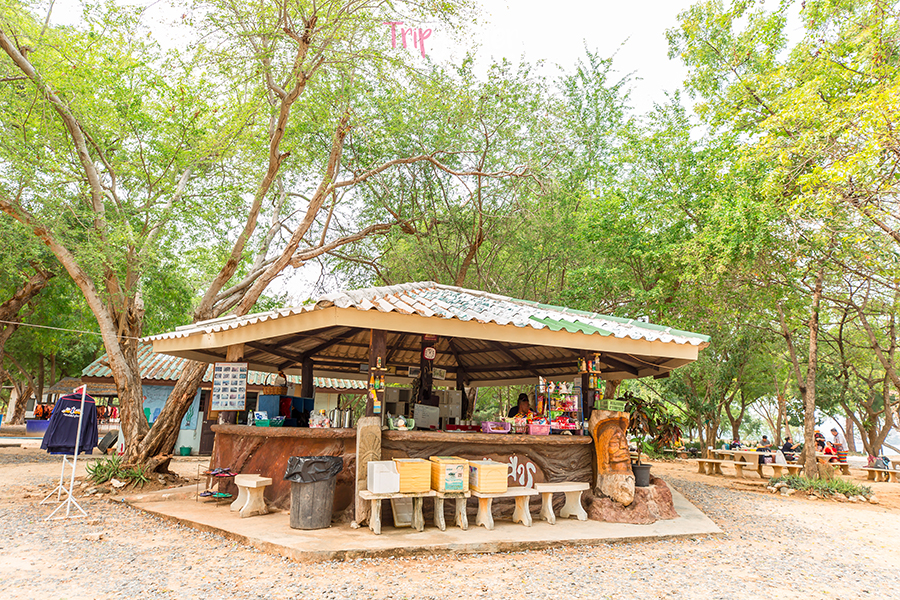 ข้างๆมีร้านข้าว เครื่องดื่ม และของใช้เผื่อจำเป็นวางขายอยู่ ราคาข้าวราดแกงที่เรากินกันก็อยู่ที่ประมาณจานละ 50 บาท น้ำเปล่าขวดละ 10 บาท ถือว่าไม่แพงเกินไปนักสำหรับนักท่องเที่ยว ใครที่จะซื้อข้าวกลางวันไปกินบนเกาะก็สามารถซื้อได้ที่นี่เช่นกัน