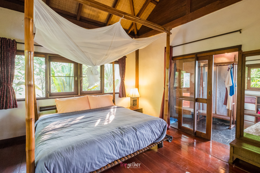 ส่วนภายในห้องตกแต่งด้วยงานไม้เป็นหลัก ประดับผ้าทอสีสันสดใส มีสิ่งอำนวยความสะดวกครบครันทีเดียว ทั้งทีวี ตู้เย็น Wi-Fi เครื่องทำน้ำอุ่น ห้องซาวน่า ฯลฯ