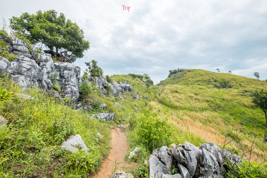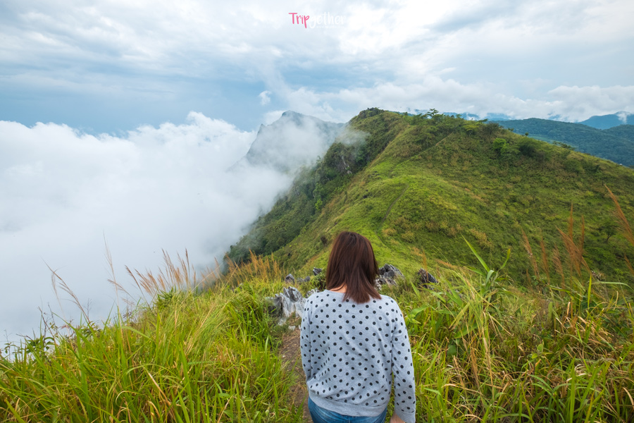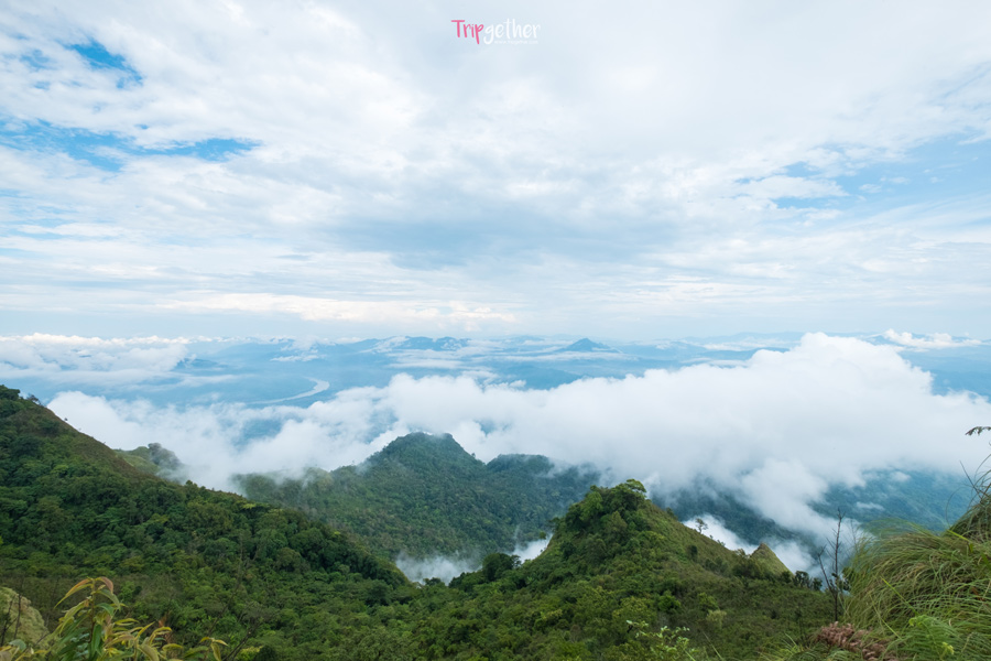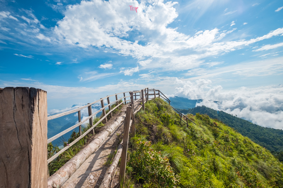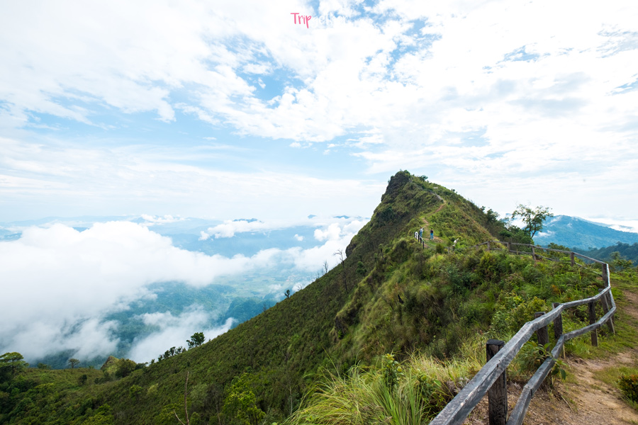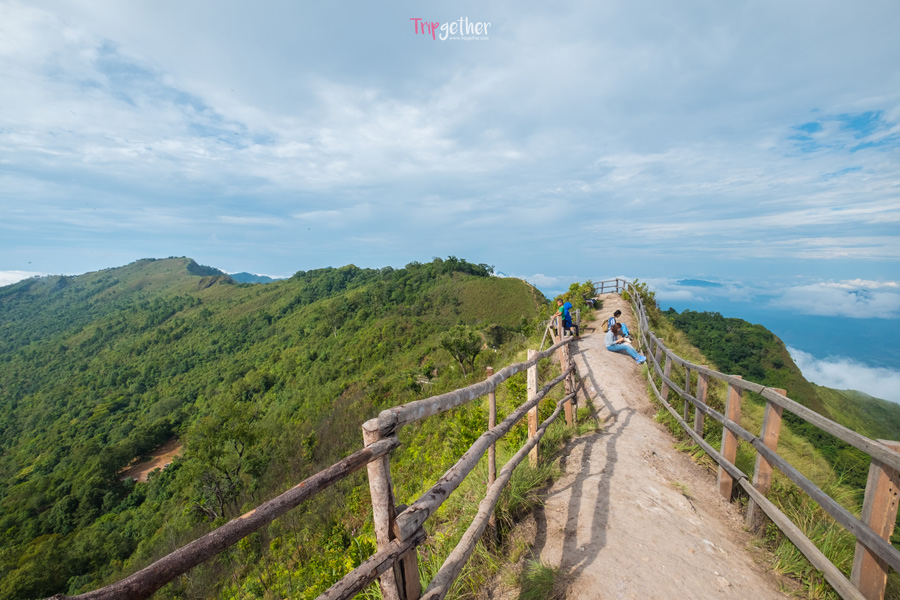 จากจุดรับส่งต้องเดินต่อไปอีกประมาณ 300 เมตร เส้นทางจะค่อนข้างชันแต่ก็มีบันไดให้เราได้อาศัยเกาะไต่ขึ้นไปเรื่อยๆ ซึ่งจะใช้เวลาเดินประมาณ 20 – 30 นาทีก็ถึงบริเวณจุดชมวิวสูงสุดของภูชี้ดาวแล้วค่ะ