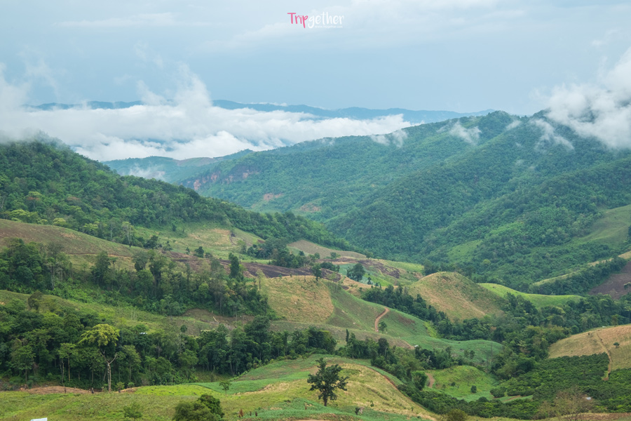Day 3 | เช้านี้เราตื่นแต่เช้าตรู่เพื่อเตรียมตัวเดินทางขึ้นผาตั้ง ภูชี้ฟ้า วันนี้ขอเที่ยวสายธรรมชาติเน้นรับอากาศบริสุทธิ์ให้เต็มปอดก่อนกลับกรุงเทพฯ ซึ่งจากเชียงรายเดินทางไปยังภูชี้ฟ้าจะใช้เวลาเดินทางเกือบ 2 ชั่วโมงเลยทีเดียว รถค่อยๆ ลัดเลาะผ่านภูเขาทีละลูกๆ ค่อยๆ ไต่ระดับสูงขึ้น มีจุดชมวิวสวยๆ ระหว่างทางให้เราได้พักสายตา และถือโอกาสพักขาไปด้วย