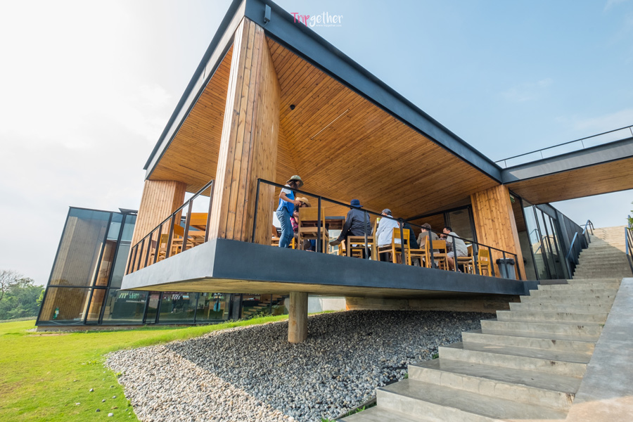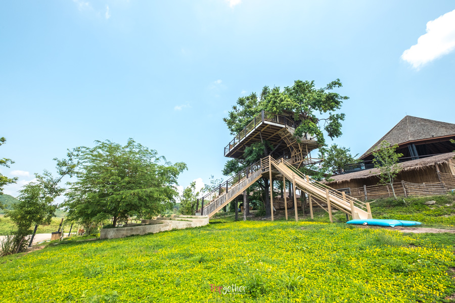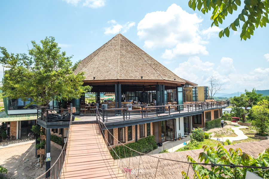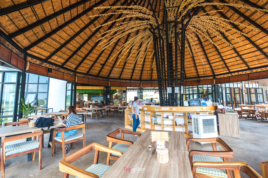 โซนร้านอาหารตกแต่งในสไตล์โมเดิร์นผสมผสานกับสไตล์รัสติกที่นำความเป็นชนบทมาอิงแอบได้อย่างลงตัว จุดเด่นภายในร้านอยู่ตรงไฟรวงข้าวขนาดใหญ่ มีบ้านต้นไม้ที่เราต้องไต่บันไดขึ้นไป และยังมีสะพานแขวนเก๋ๆ ให้เราได้โพสต์ท่าถ่ายรูปอีกด้วยนะ