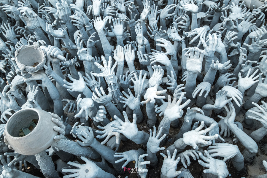ระหว่างเดินเข้าอุโบสถจะผ่านสะพานมีรูปปั้นที่สื่อถึงขุมนรก เพื่อให้เราลดละกิเลสต่างๆ ก่อนที่จะเข้าสู่พระอุโบสถ สำหรับวัดร่องขุ่นจะเปิดให้เข้าชมทุกวันตั้งแต่ 6.30 – 18.00 น. นักท่องเที่ยวคนไทยเข้าชมฟรี ชาวต่างชาติเสียค่าเข้าชมคนละ 80 บาท