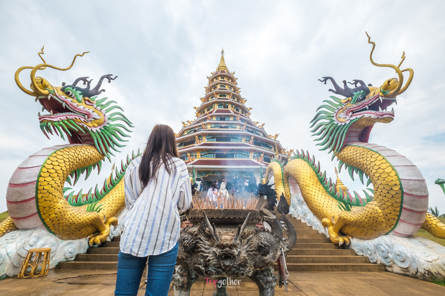 Day 1 | วันแรกเราออกเดินทางกันช่วงเช้า นั่งเครื่องบินจากกรุงเทพฯ มาลงที่สนามบินแม่ฟ้าหลวงใช้เวลาเดินทางประมาณ 1.40 ชั่วโมง พอมาถึงเชียงรายเราก็ขอไปสักการะขอพรและชมความสวยงามกันก่อนที่วัดร่องเสือเต้น