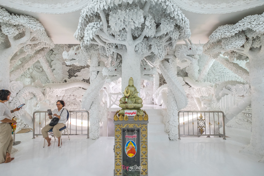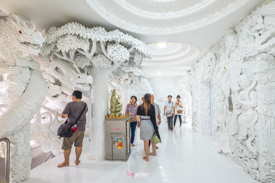 นอกจากจากจะได้ชมบรรยากาศมุมสูงของวัดแล้ว ชั้น 25 ยังมีประติมากรรมปูนปั้นสีขาวที่คุณจะรู้สึกว้าว! เมื่อประตูลิฟต์เปิดขึ้นอย่างแน่นอนค่ะ
