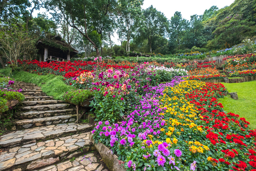 หลังจากชมความสวยงามของสวนรุกขชาติแม่ฟ้าหลวงกันแล้ว เราไปฟินกันต่อกับสวนดอกไม้ที่มีความเป็นมาอันน่าประทับใจ ด้วยสมเด็จพระศรีนครินทราบรมราชชนนีมีพระราชประสงค์ให้ผู้ที่ไม่มีโอกาสไปต่างประเทศได้มาเที่ยวชมกันที่ “พระตำหนักดอยตุง”