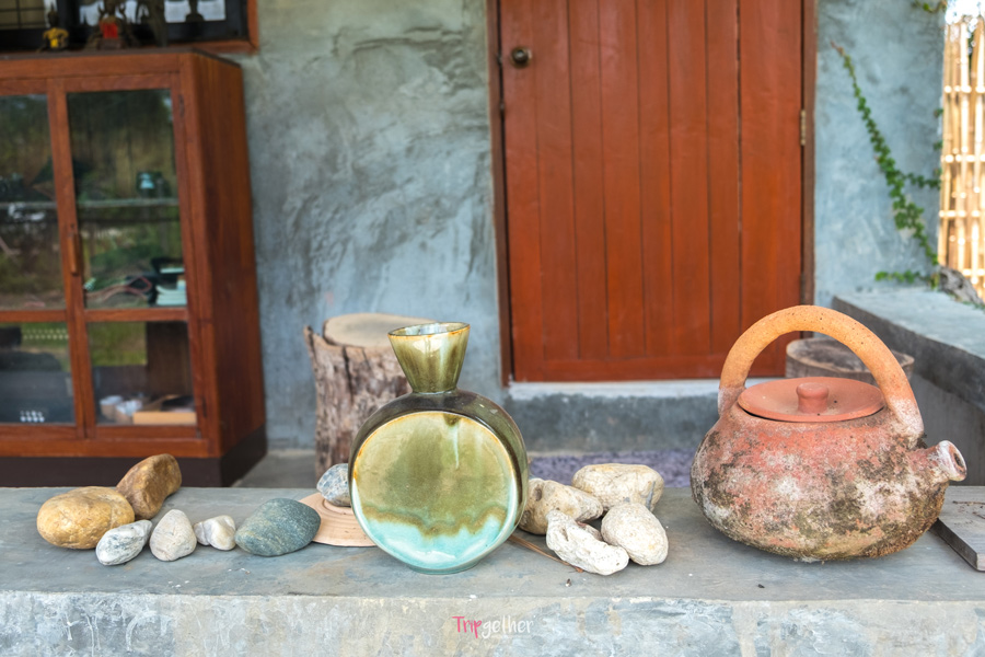 และไม่เพียงแค่อาหารเท่านั้น ที่นี่ยังปั้นดินให้เป็นจาน ชาม ช้อน เครื่องใช้ต่างๆไว้ใช้เองอีกด้วย หากใครสนใจอยากมาเรียนรู้การทำเครื่องปั้นดินเผาก็โทร. ติดต่อสอบถามล่วงหน้ากันได้เลยที่เบอร์ 081 205 3554 หรือถ้าใครอยากมาซึมซับบรรยากาศการพักผ่อนแบบสโลว์ไลฟ์สักคืน ตื่นเช้าเก็บผักมาปรุงอาหารก็ได้ฟีลพักผ่อนไปอีกรูปแบบหนึ่ง