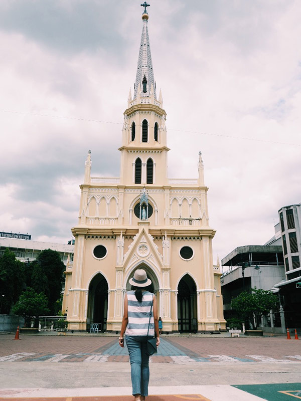 เราก็จะผ่านโบสถ์ โบสถ์กาลหว่าร์ อันสง่างามค่ะ “วัดกาลหว่าร์” เป็นวัดเก่าแก่มีความเป็นมาจะเรียกได้ว่าพร้อมกับกรุงรัตนโกสินทร์เลยทีเดียว จากประวัติศาสตร์ ทำให้สามารถพูดได้อย่างเต็มปากว่า เป็นวัดคาทอลิกคู่กรุงรัตนโกสินทร์ก็ว่าได้