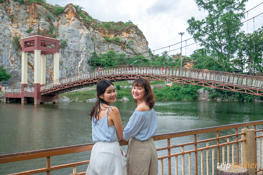 ทริปนี้เราเริ่มออกเดินทางจากกรุงเทพฯกันตั้งแต่เช้า ไปเช็คอินที่แรกกันเลยที่ อุทยานหินเขางู แลนด์มาร์กธรรมชาติสุดยิ่งใหญ่ของราชบุรี ที่ใครมาก็ต้องแวะ! จุดเด่นของที่นี่คือ ภูเขาหินปูนขนาดใหญ่ ที่โอบล้อมบ่อน้ำสีเขียวมรกต มองแล้วอลังการสุดๆ ยิ่งช่วงแดดอ่อนๆ ตอนเช้าหรือเย็น แสงจะกระทบกับผิวน้ำและหินจนดูเหมือนภาพวาดเลยทีเดียว