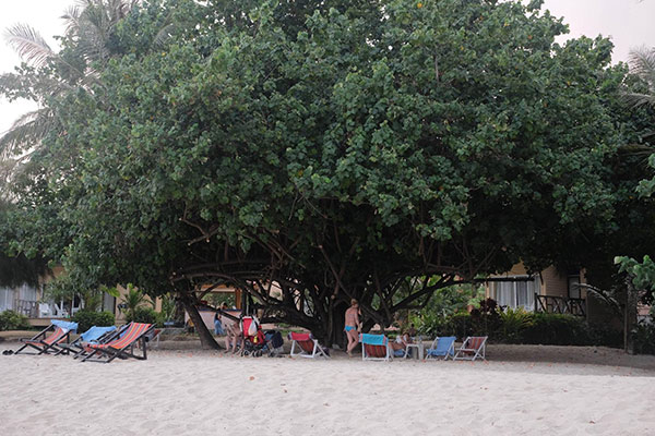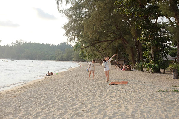 หลังจากกินเสร็จ ฝนก็ตกค่ะ… แต่ยังไม่จบเห่ เราก็นั่งๆนอนๆอยู่โฮสเทล หาไรทำรอเวลาฝนหยุดเนี่ยแหละ แล้วถึงค่อยออกไปเดินเล่นที่ชายหาดกัน ด้านหลังโฮสเทลจะมีสะพานเดินตรงไปถึงหาดได้เลย น้ำทะเลที่หาดด้านหลังไม่ได้ใสกริ๊งขนาดนั้น แต่ก็ยังน่าเล่นอยู่ดี ข้างทางนี่จะมีชิงช้าผูกกับต้นไม้ไว้เป็นระยะๆให้นั่งชิล มีบาร์ มีที่นั่งของ ที่พักรีสอร์ทต่างๆ ไว้บริการ จากหาดเรามองเห็นเกาะหยวกไกลๆด้วย พี่ที่โฮสเทลบอกว่า สามารถเช่าเรือคายัคพายไปได้ ที่นั่นไม่มีปะการัง แต่น้ำใสมาก และปลาเยอะมาก ไม่ไกลมากแค่ครึ่งวันเอ๊ง