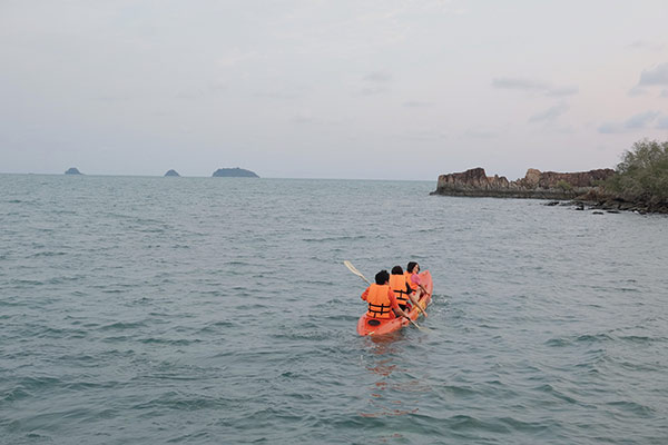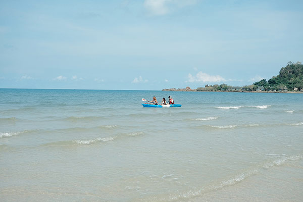 DAY 3: วันนี้วันสุดท้ายแล้วเลยกะว่าจะไปพายเรือคายัค เล่นทะเล ว่ายน้ำสระกันก่อนแล้วค่อยอาบน้ำเช็คเอ้าท์ เรือคายัคมีให้เช่าตามข้างหาดเลย ชั่วโมงละ 90 บาท นั่งพายกันได้ 3 คน เอาจริงๆแค่ครึ่งชั่วโมงก็เหนื่อยกันแล้ว พายๆวนๆอยู่เท่านั้น คิดว่าไปไกล พอเอาขาจุ่มปุ๊ป น้ำทะเลยังครึ่งน่องอยู่เลย