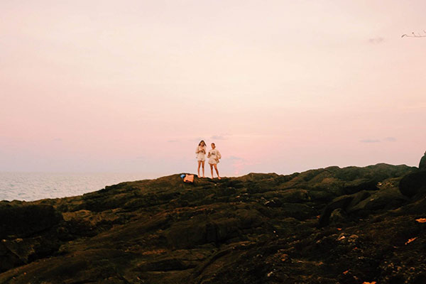 อ่ะถึงเวลาไปดูพระอาทิตย์ตกกันสะที แต่ด้วยความที่คิดว่าจะไปง่าย ไม่ง่ายเลยยยยย คือมันต้องปีนหิน ขึ้นลงนู่นนี่นิดนึง กว่าจะไปถึงคือฟ้าเริ่มมืดละ ถึงปั๊ป เมฆบัง จบกัน…. หมดกันภาพอาทิตย์กำลังตกเหนื่อน้ำชั้น แต่ไม่เป็นไร ช็อตนี้แสงสวยมากกกก คนไม่มีเลยค่ะ มีแต่พวกเราแค่นั้นเลย แบบเงียบมาก สงบบบบบ ไร้ผู้คน แหลมทั้งแหลมเป็นของเราอะไรประมาณนั้น (ยังไม่มีใครเอะใจ ทั้งๆที่แหลมนี้มันก็ดัง ทำไมคนไม่มีเลย… เดี๋ยวบอกๆ)