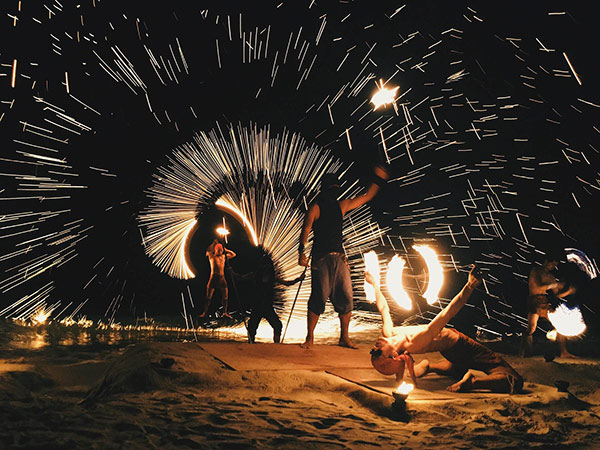 หลังจากนั้นเราก็กลับมาที่พัก อาบน้ำอาบน้ำท่ากันก่อน พร้อมออกอีกรอบ คืนนี้เป็นคืนสุดท้ายของทริปแล้วว เราจะไปนั่งชิลกันอย่างต่อเนื่องที่ สบาย บาร์กัน พวกบาร์ ผับ จะครึกครื้นกันมากแถวหาดทรายขาว ซึ่งต้องนั่งรถสองแถวไป เดินไม่ได้ไกลล ขาไปคนละ 50 บาท แต่ขากลับโดนไปคน 70 เพราะว่าดึกแล้ว ก็เลยโดนโก่งราคาไปตามระเบียบ (อันนี้พยายามต่อแล้วนะ) ที่ สบาย บาร์ จะเป็นร้านอาหารติดทะเลเลย ตอนค่ำก็จะเป็นร้านอาหารนี่ละ มีดนตรีสด มีโชว์ไฟเป็นรอบๆ ที่นั่งมีทั้งแบบโซฟา โต๊ะเก้าอี้ธรรมดา แต่เท้าติดทรายทุกโต๊ะได้บรรยากาศมาก แต่พอสักประมาณ 5 ทุ่มก็จะเริ่มย้ายเข้าโซนผับกันแล้วค่ะ