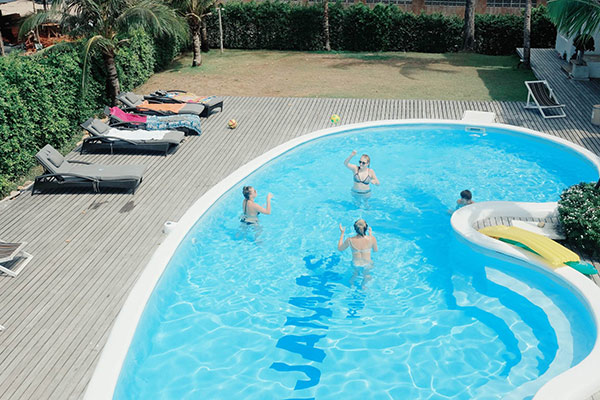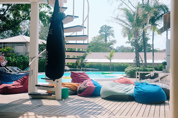 Pajamas Hostel คือที่พักของพวกเราสำหรับทั้งสองคืนที่เกาะช้างเลย โฮสเทลขนาดกลางๆที่ด้านนึงติดถนน ส่วนอีกด้านนึงอยู่ห่างจากทะเลแบบเดินประมาณ 2 นาทีถึง เรานอนแบบห้องรวมกันค่ะ ราคาเตียงละ 600 บาท (รวมอาหารเช้าแล้วนะ) ห้องนึงมี 8 เตียง นี่จองไปกัน 6 เตียง แทบครองห้อง.. แต่ถ้าใครชอบแบบส่วนตัว ที่นี่ก็มีห้องแยกไว้อีกโซนนึงด้วย นอกจากที่พักน่ารักแล้ว คือเราชอบตรงที่ส่วนกลางโฮสเทล มันมีอะไรให้เราทำหลายอย่างเลย ทั้งดูหนัง เล่นกีต้าร์ มีเปลไว้นอน สระว่ายน้ำ แล้วก็พวกเกมต่างๆไว้ให้เล่น คือถ้าเบื่อทะเลแล้ว ก็มานั่งชิลหาไรทำอยู่ที่พักได้เลย อันนี้แหละ เสน่ห์ของโฮสเทลเลยย