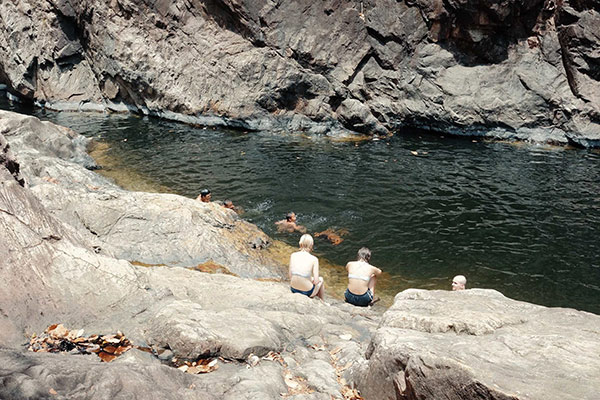 พอเช็คเอ้าท์แล้ว เราก็ฝากของฝากกระเป๋าไว้ที่โฮสเทลก่อน เดี๋ยวค่อยกลับมาเอา เพราะจะไปตะลุยน้ำตกกันก่อน เอาให้คุ้มก่อนกลับเนอะ น้ำตกตลองพลู เรียกสองแถวจากหน้าที่พักไป 50 บาท ค่าเข้าถ้าเราจำไม่ผิดน่าจะ 20 บาท ตอนแรกไม่ได้หวังอะไรมาก เพราะพี่ที่ร้านบอกน้ำมันแห้งนะ แต่ไหนๆก็มาแล้ว ก็แวะไปแล้วกัน ไปถึงนี่ต้องเดินเข้าไปอีกหน่อย ไม่ไกลแต่เหนื่อยมาก เพราะร้อน ประมาณ 700 เมตรถ้าจำไม่ผิดนะ ข้างทางนี่น้ำแห้งขอด แต่พอไปถึงตัวน้ำตกนี่สวยมากกกกก ขนาดน้ำไม่ค่อยเยอะ แต่มันก็ลงเล่นได้นะ น้ำเย็นมากกกกก ฝรั่งเอย เด็กเอยเล่นกันเต็ม ต้องไปนะ คือมันดีมาก