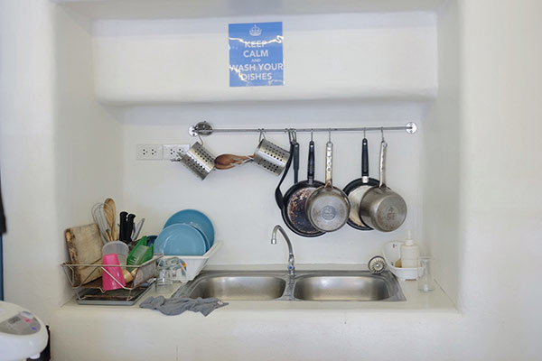 เครื่องปรุง กะทะ ภาชนะนี่เขามีไว้ให้ใช้ฟรีหมดเลย แต่กฏคือ ใช้เสร็จแล้วก็ล้างทำความสะอาดคืน ส่วนตู้เย็นเราจะซื้ออะไรมาแช่ก็ได้ แต่ต้องเอาก็อตเทปเขียนชื่อแปะไว้ บ่งบอกความเป็นเจ้าของ น่ารักกกกก 5555 ไม่มีหายนะ นี่แช่หมดทั้งเป๊ปซี่ ขนม ของจุกจิก เบียร์ ยังอยู่เหมือนเดิมเป๊ะ