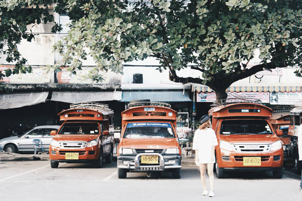 ถึงเวลาที่เราจะไปชิคๆ คูลๆ ในนิมมานกันละค้า ออกมาหน้าปากซอย นั่งรถแดงไปนิมมานเจ้า รถติดมากเชียงใหม่เจริญพอๆ กับกรุงเทพเลยค่ะ เป็นความรู้ใหม่ว่า ที่เชียงใหม่ไม่มีรถเมล์ แท็กซี่ก็น้อยมากแทบไม่มี มีแต่รถแดงที่ใช้เดินทางทั่วไป และถ้าเราพูดภาษาเหนือกับคนขับค่ารถจะถูกลงอีก แล้วก็บังเอิญมากที่แพทพูดได้นางเป็นคนเจียงใหม่เจ้า ก็เซฮัลโหลกันไปน่ารักดีค่ะ
