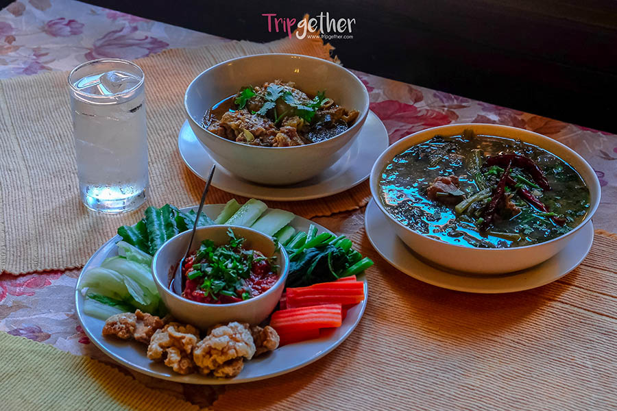 ก่อนที่เราจะเดินทางต่อไปที่ดอยแม่อูคอ เราก็เลยแวะ ร้านใบเฟิร์น ร้านอาหารพื้นเมืองขึ้นชื่อของเมืองแม่ฮ่องสอน และไม่พลาดที่จะสั่งเมนูแนนำของทางร้านอย่าง อุ๊ปไก่, ผักกาดจอ และน้ำพริกอ่อง
