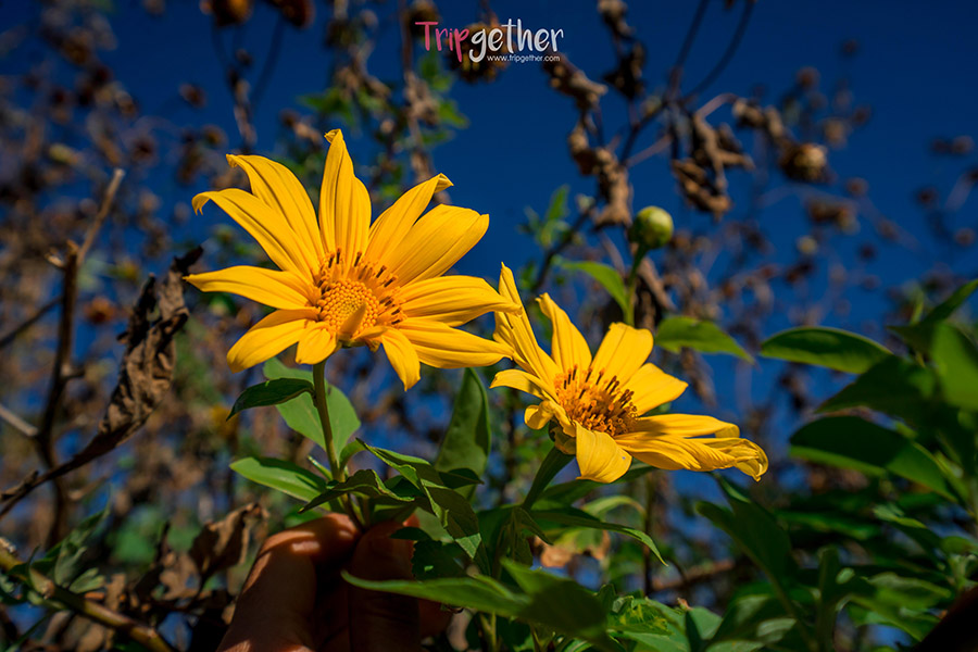 ปกติฤดูท่องเที่ยวดอยแม่อูคอจะเป็นช่วงเดือน พฤศจิกายน-ต้นเดือนธันวาคม เพราะจะเป็นช่วงที่ดอกบัวตองสีเหลืองบานสะพรั่งไปทั่วทั้งดอย แต่น่าเสียดายที่เรามาช้าไปนิด แต่ก็ยังพอมีดอกที่ยังบานเหลือให้เราได้ชมอยู่