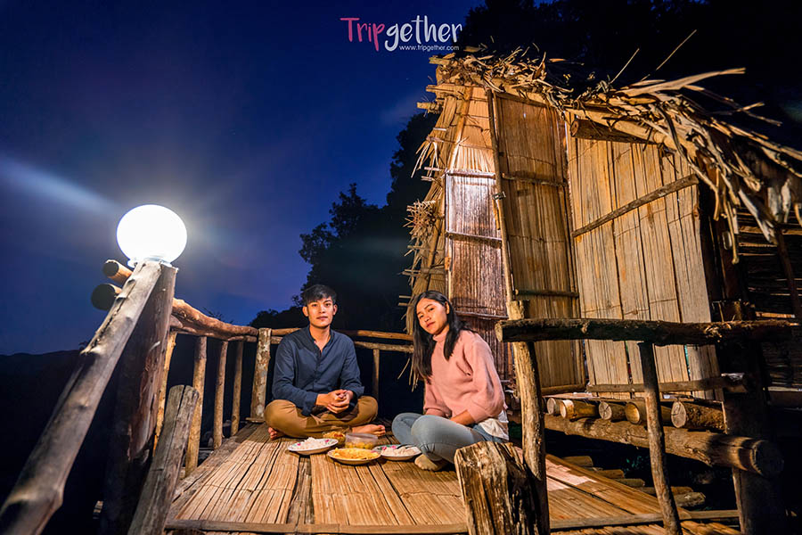 แถมยังมีมื้อเย็นเสิร์ฟถึงหน้าบ้านพัก ให้กินกันที่ระเบียงหน้าบ้าน