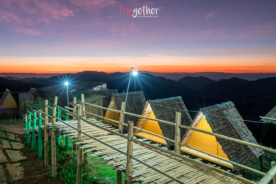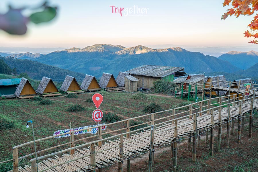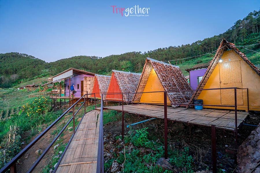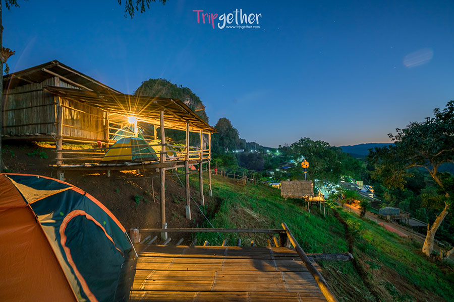 พอแสงแดดค่อยๆ จางหายไป อากาศเย็นๆ หนาวๆ ก็เข้ามาทันที วันนี้เราพักกันที่ ลานกางเต็นท์จ่าทอ&โฮมสเตย์บ้านจ่าโบ่ ที่พักบนเนินเขาที่มีบ้านพักน่ารักๆ หันหน้าออกสู่วิวและยังมีลานกางเต็นท์ให้ท้าทายความหนาวอีกด้วย