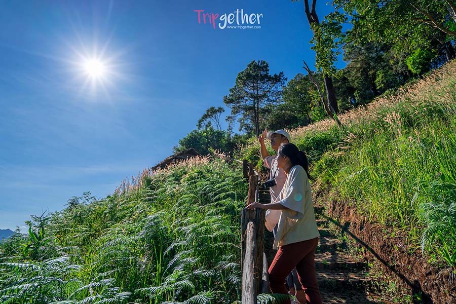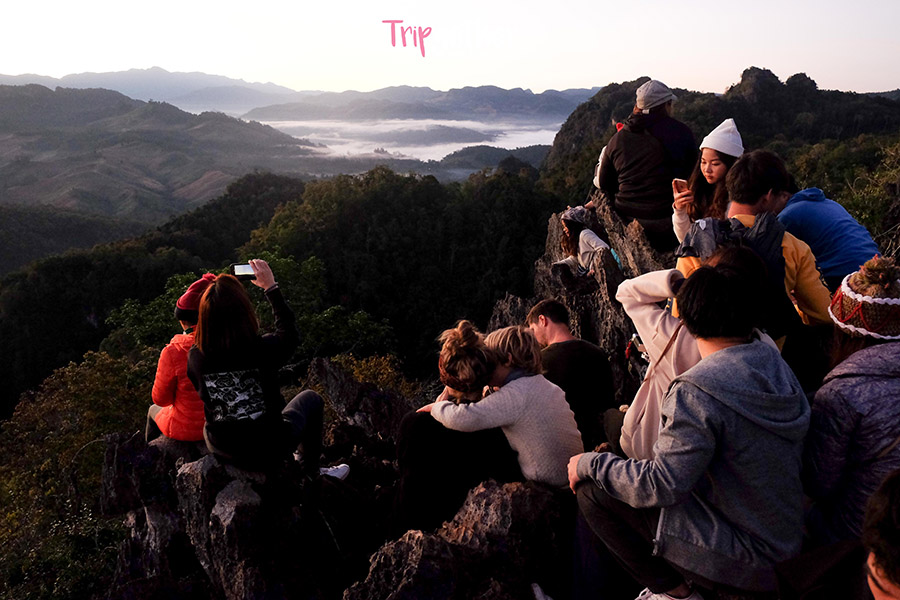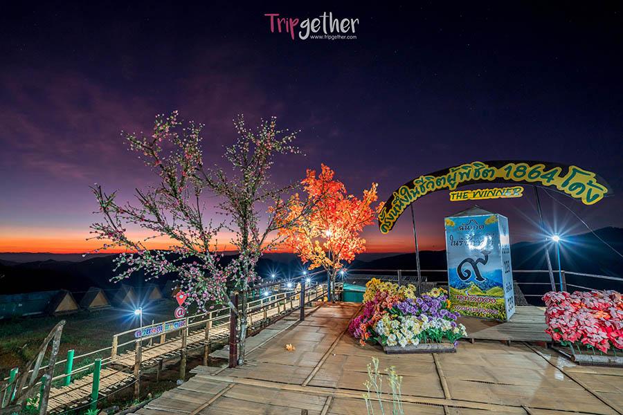 ใช้เวลาเดินขึ้นประมาน 20 นาทีเราก็ขึ้นมาถึงบนยอดดอยตั้งแต่ท้องฟ้ายังไม่สว่าง เพื่อมารอดูไฮไลท์ที่สวยที่สุดคือตอนพระอาทิตย์ขึ้น ถ้าโชคดีอาจได้เจอทะเลหมอกอีกด้วย