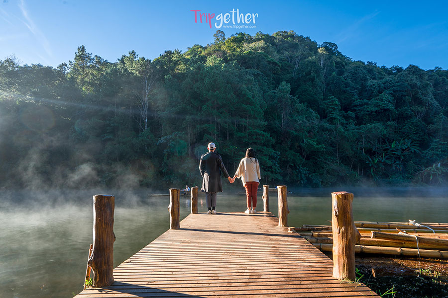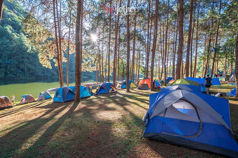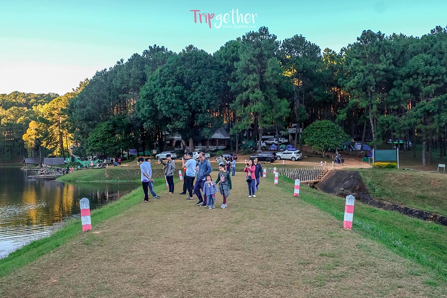 เราเลือกที่กางเต็นท์ใกล้ๆ ทะเลสาบเพราะจุดเด่นของปางอุ๋งคือทะเลสาบและป่าสน แบบที่เปิดเต็นท์มาแล้วเจอหมอกลอยบนผิวน้ำพร้อมอากาศหนาวๆ