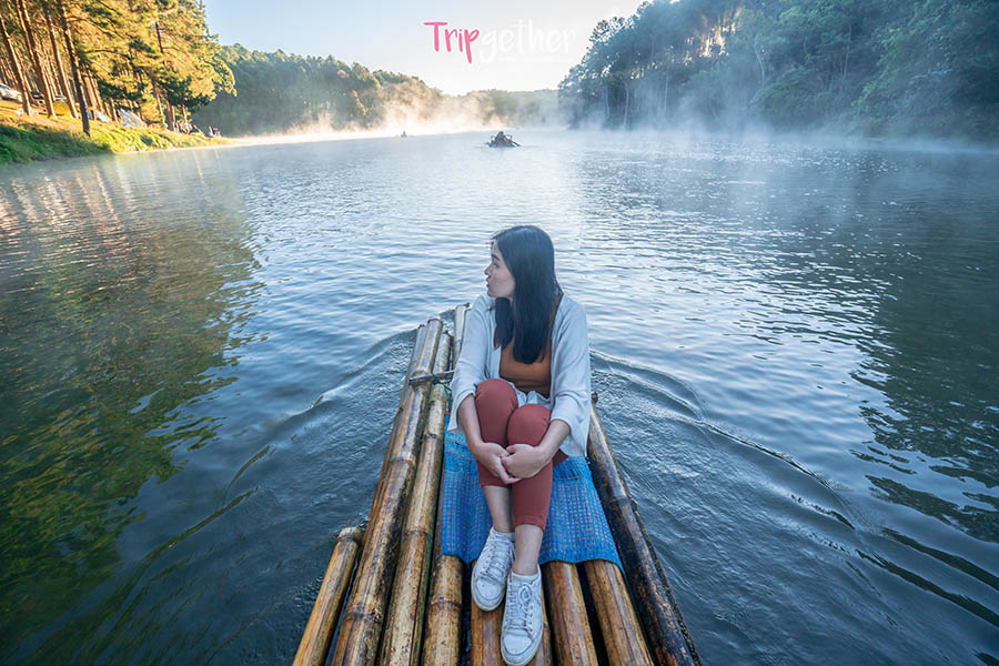 เช้าวันที่3 ของทริป เรารีบตื่นแต่เช้าในอากาศ 10 องศา และเราก็รีบมาทำกิจกรรมซึ่งอีกหนึ่งไฮไลท์ของปางอุ๋งคือการมาล่องแพไม้ไผ่ยามเช้าท่ามกลางสายหมอกที่ลอยขึ้นบนผิวน้ำ ล่องแพไม้ไผ่ราคา 150 บาทสามารถนั่งได้ 2 คน