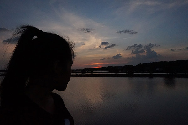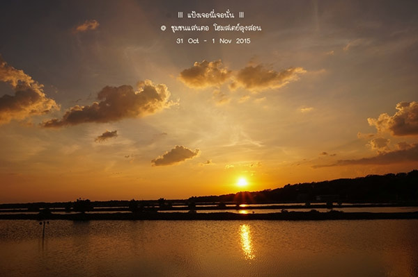 ที่โฮมสเตย์มีขนมกับน้ำดื่มเล็กๆ น้อยๆ ขายด้วยนะคะ สามารถอุดหนุนกันได้ คนแถวนั้นก็จะแวะเวียนมาซื้อของที่บ้านลุงสอน รอยยิ้มคือคำทักทายที่ดีที่สุดสำหรับคนที่เพิ่งเจอกันครั้งแรก เราเจอใครมาซื้อของก็ยิ้มให้ก่อน จากนั้นก็จะมีคำถามสั้นๆ ตามมาตลอด เรารอเวลาพระอาทิตย์ใกล้ตกดิน เดินออกไปตามคันนาหอยแครง เพื่อไปดูพระอาทิตย์ตก มีภาพมาฝากด้วยนะ