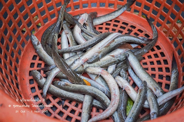 ปลาชนิดนี้เรียกว่า ปลาเขือ หน้าตากึ่งปลาช่อนกึ่งปลาไหลยังไงก็ไม่รู้ ป้าเอื้อนบอกว่าขายได้โลละ 70 บาท