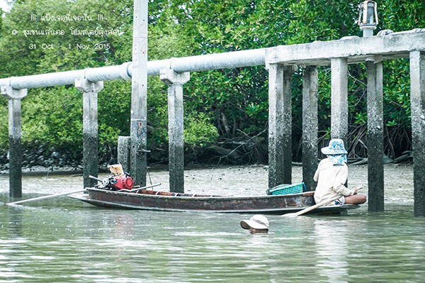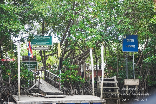 4.เหมาเรือแถวหน้าโรงเรียนเข้าไปที่บ้านแสนตอ เราเดินไปร้านค้าแถวหน้าโรงเรียนว่าจะไปบ้านลุงสอน ชุมชนแสนตอต้องไปขึ้นเรือที่ไหนคะ? เราไม่ได้ถ่ายรูปจุดขึ้นเรือมา ถามคนแถวนั้นได้ค่ะ  ครั้งก่อนที่เรามา มีป้าพาเดินไปขึ้นเรือ มากันเยอะด้วยเลยไม่ได้จำทางอะไรไว้เลย ครั้งนี้ไม่มีคนพามา แต่ชี้มือบอกว่าบ้านหลังเล็กๆ ข้างร้านขายปลาเค็ม เราไปยืนด่อมๆ มองๆ ตั้งนานไม่เห็นมีใครเลย บ้านนี้จะอยู่ติดกับบ้านที่เป็นร้านนวดแผนไทย ร้านนวดข้างๆ เห็นเราเลยถามว่ามาหาใคร? เราบอกว่าจะเหมาเรือไปชุมชนแสนตอ เขาก็บอกให้เราเดินเลาะข้างบ้านไปที่ท่าเรือเลย พอถึงท่าเรือก็ไม่เห็นใคร บ้านก็เงียบ ถ้าเจ้าของบ้านออกมาเห็นจะโดนยิงไหมก่อน? ลองพูดคนเดียวเสียงดังๆ มีใครอยู่ไหมคะ? ก็เงียบ…เลยหน้าด้านยืนรอ ตีหน้ามึนอยู่ที่ท่าน้ำ สักพักมีความเคลื่อนไหวในบ้าน เราเลย สวัสดีค่ะ ก่อนเลย (กลัวโดนยิง) เดินเข้าไปเจอคุณลุง รีบบอกเลยว่า จะไปชุมชนแสนตอ บ้านลุงสอน คุณลุงไปไหมคะ? คุณลุงพยักหน้าถามว่าเรามากี่คน เราบอกว่าคนเดียว คุณลุงคิด 100 บาทค่ะ (ครั้งก่อนมากัน 5 คน 150 บาท แต่ไม่ใช่ลุงคนนี้นะคะ) เราเป็นคนบอกลุงสอนว่าจะเหมาเรือเข้าไปเองเพราะเคยมาแล้ว ถ้าไม่เคยมาลองถามลุงสอนก่อนว่าสะดวกมารับที่ท่าเรือตรงโรงเรียนไหม? การเดินทางอาจจะดูยุ่งยากไปนิด แต่รับรองว่าถึงแน่ๆ เราอธิบายไม่เข้าใจแสดงความคิดเห็นทิ้งไว้ หรือจะหลังไมค์มาก็ได้ค่ะ