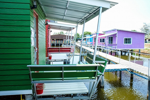 โฮมสเตย์ที่เราเลือกกันวันนี้คือ “รัตนสร้อยโฮมสเตย์” ราคาต่อหัว คนละ 1500 บาท ประกอบด้วย อาหารและน้ำดื่มไม่อั้น 3 มื้อ กับ พาล่องแพเปียกตอนเย็น บ้านพักสีสันสดใส ตั้งอยู่ในคลองน้ำ เวลาเดินต้องมีสตินิดนึง เดี๋ยวตก