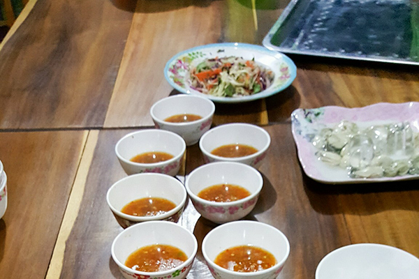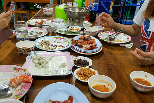 หลังจากนั้นก็อาบน้ำอาบท่า เตรียมพร้อมสำหรับมื้อเย็น มื้อที่ตั้งตารอคอย พอไปถึงปุ๊บอาหารก็มา ไม่ต้องรอให้เสียเวลาเลย รวดเร็วมาก เต็มโต๊ะ